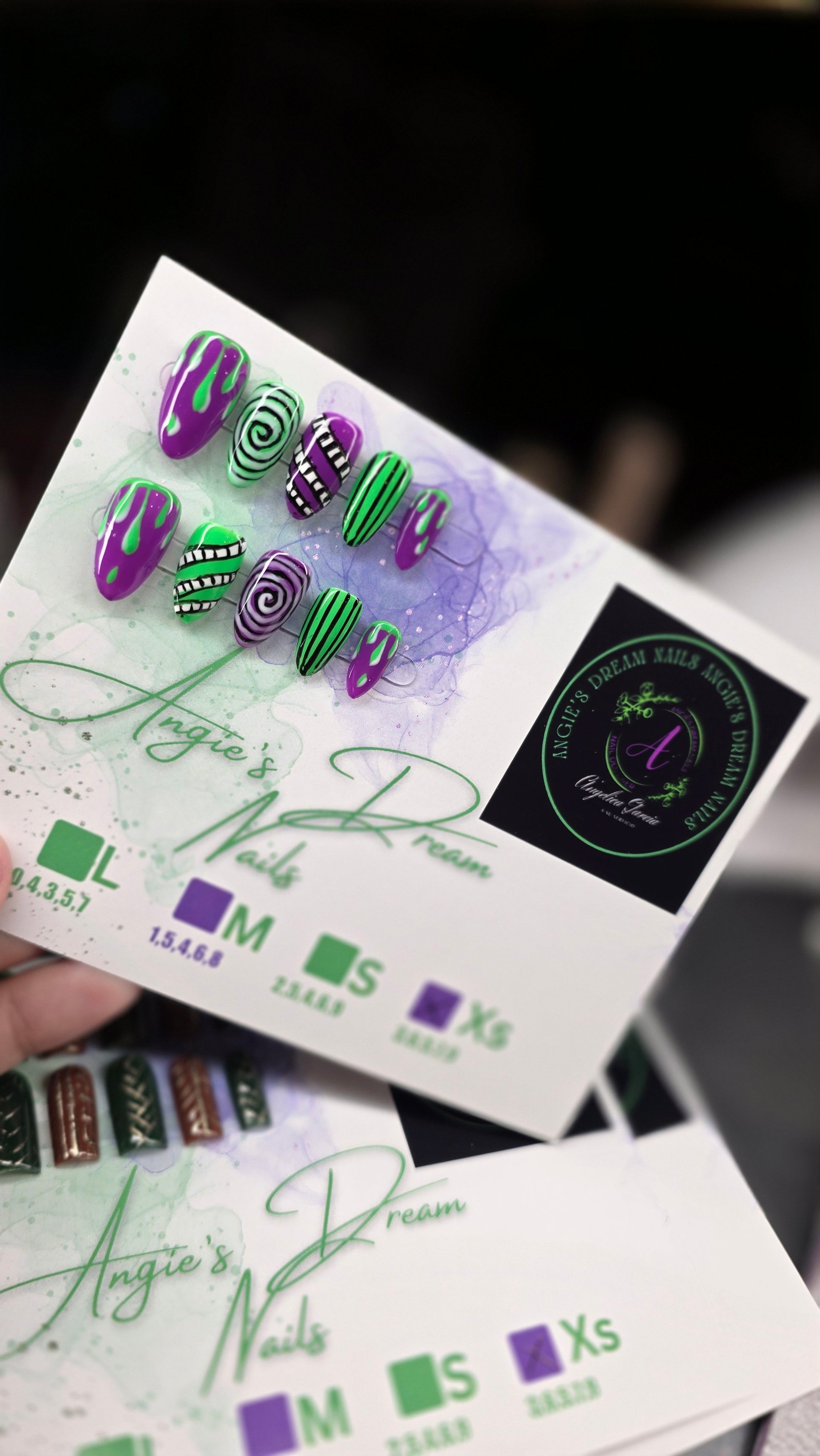 Halloween ready nails with Beetlejuice Drip! These nails are ready to ship. Size xS 3,6,5,7,9 No need to wait, order now and get ready to slay this Halloween with Beetlejuice Drip!